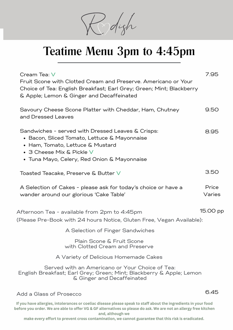 Our Cakery menu features a broad assortment of cakes and snacks, in addition to a great choice of hot and cold drinks such as teas, and a variety of coffee options - Fancy an espresso or a Latte? We've got you covered. Our menu also has a great range of gluten-free, dairy-free, and vegan options so no matter what, theres always something delicious right around the corner!